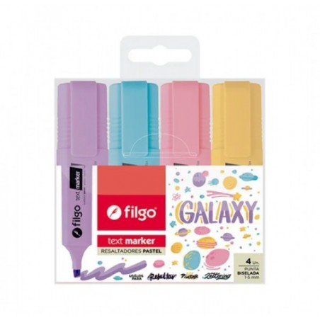 Resaltador Text marker Galaxy pastel  punta Biselada x4 FILGO